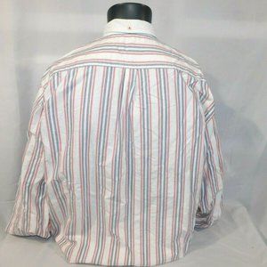 This 2012 Tommy Hilfiger Mens 2XL Button Front Long Sleeve White faded Blue Red Striped Shirt is in Great clean condition. Shirt is 100% cotton - Machine Washable. Shirt measurements laying flat are: