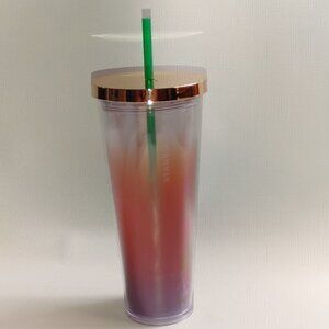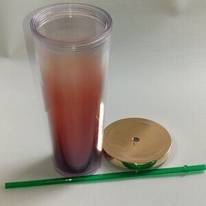 2014 Starbucks Gradient Red Ombre Gold Top 24 Oz Venti Tumbler