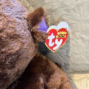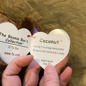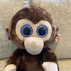 2014 -Ty Beanie Boos Plush -16” XL Coconut Monkey Purple Glitter Eyes . Scratch on right eye