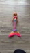 Make a real splash with this magical light-up Barbie mermaid doll! Dip Barbie Rainbow Lights Mermaid doll into water to see her mermaid tail glimmer with colorful lights inspired by a sparkling rainbow! Press the button in Barbie doll’s necklace to switch her to “on” mode, and dip her into the tub or pool to activate the light show. Bring the magic ashore, you can push the button in the doll’s necklace to enjoy the light show without water. Rainbow fins, a “pearl”-decorated belt, pink-streaked hair and a princess tiara complete the head-to-toe magical mermaid look. Batteries included. As is.