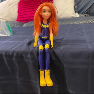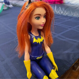 2015 Mattel DC Comics Super Hero Girls BATGIRL 12" Doll Red Hair Green Eyes. Batgirl is in excellent Pre-owned condition. Headband is still attached with manufactures plastic ties. Hair is smooth and brushable. Her joints work as they should. Lightly played with good condition