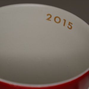 Enjoy your morning coffee or tea in style with this beautiful Starbucks mug. The mug features a vibrant red color with "2015" printed in gold, making it a timeless addition to your drinkware collection.