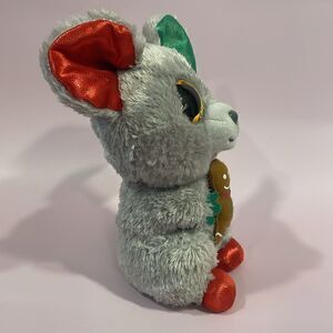 2015 Ty Beanie Boos MAC the Christmas Mouse Red/Green/Grey w Gingerbread Man EUC