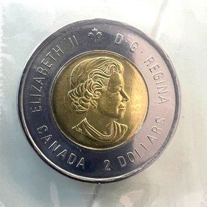 Celebrate Canada's 75th Anniversary of the Battle of the Atlantic with this stunning 2016 BU $2 toonie. This 5-pack of brilliant uncirculated coins features the iconic design of a ship convoy, Airplane and Personnel manned Guns on the reverse side, honoring the brave men and women who fought in the longest battle of the Second World War. The obverse features the effigy of Queen Elizabeth II. Each toonie is made of durable steel, nickel and copper and is RCM certified, ensuring its authenticity and quality. A must-have for any collector or history buff, this commemorative coin is a tangible reminder of Canada's proud military history and the sacrifices made to protect our nation's freedom. Add this special edition to your collection today.