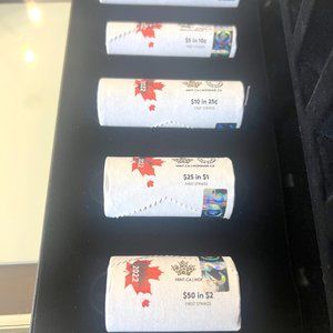 Introducing the 2022 Canada Special Wrap Roll Collection - First Strikes! This commemorative coin collection features a unique blend of nickel, copper, and steel, and is available in an uncirculated condition. Each roll is carefully wrapped and includes First Strikes, making it a must-have for collectors. The set includes 5 Cent Roll, 10Cent Roll, 25 Cent Roll, 1 Dollar Loonie roll and 2 dollar Toonie Roll! These coins are exclusively manufactured in Canada and feature intricate details on both sides. Add this rare collection to your coin collection today!