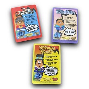 2023 McDonald’s Kerwin Frost McNugget Nugget Buddies Lot of 3 With Boxes & Cards is a must-have for any collector or fan of McDonald's memorabilia. This set includes three adorable McNugget Buddies featuring the popular Kerwin Frost character, as well as Don Bernice & Waffutu, each packaged in their respective open boxes with accompanying cards. (Two are missing paper wrapping)