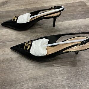 2024 Valentino, black patent leather sling back, size 37, heel 60 mm. All original packaging, dust bags, authentication and heel replacements included. Worn once, like new