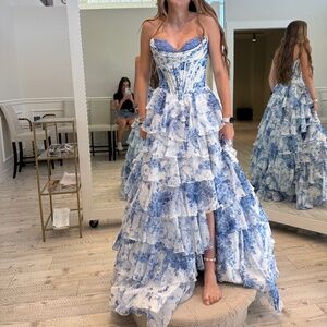 2025 Sherri Hill Blue and White Dress Style 5720