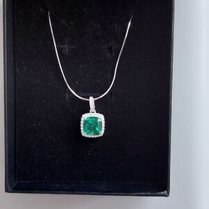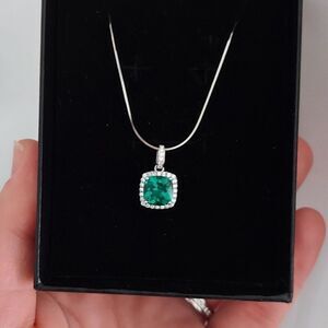 🌟Material: 925 sterling silver Green Emerald Pendant. Stamp shown on pendant and chain