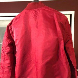 Red 21Men bomber jacket with front snap button opening and two side pockets. Collar and sleeves both knitted trimmed in red. Excellent condition.