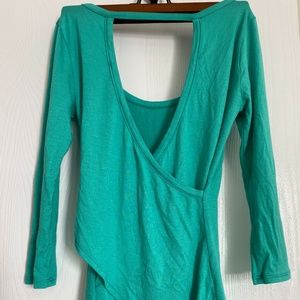 Guess top, never worn. 95% rayon, 5% spandex. Approximately 22 inches in length from shoulder to hem. Material has stretch. 3/4 length sleeves.