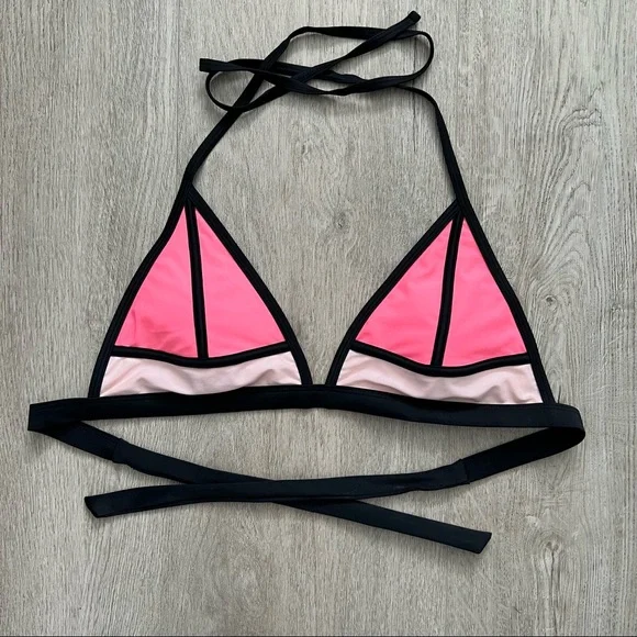Pink and black triangle bikini top! Looks great with black bottoms!