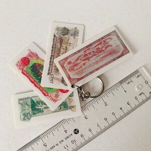 2/$10* Vintage Keychain Canadian Money Dollar Bills Mini Currency Banknotes