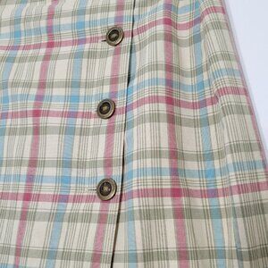 🥑2/100🥑Y2K Vintage Tan & Blue Plaid 90s Style Straight Wrap Skirt %100 Cotton