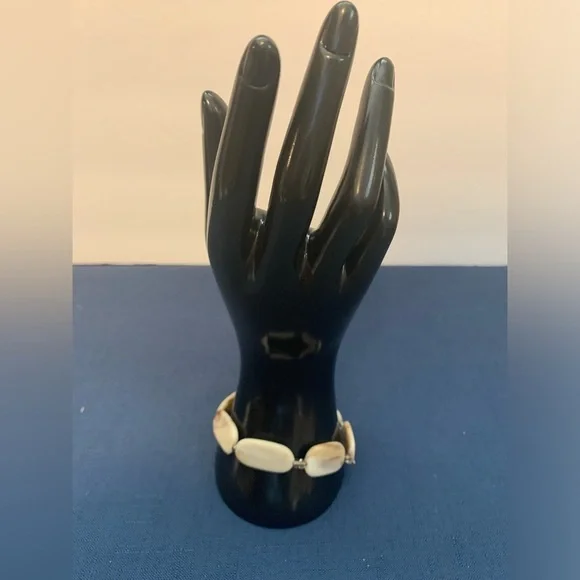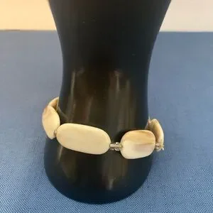 This bracelet is elastic and will fit most wrists. It’s made of flat shells with a tiny clear bead uniting each shell to each other. The flat shells are smooth and polished to enhance the different hues of colours and designs.