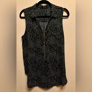 2/$15 - Dynamite Black & White Polka Dot Sleeveless Blouse – Zip Front