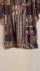 With its elastic waist and cut, this looks vintage 80s or early 90s to me. This casual top features floral patterns in shades of purple, black, gray, cream and browns.