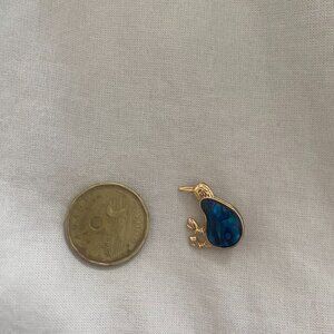 2/$15 Kiwi Bird Paua Shell Inlay Gold Brooch Pin Blue
