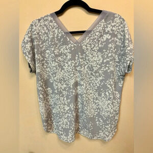 2/$15 - Monk & Lou - Gray V-Neck Blouse with Floral Print and Back Detail