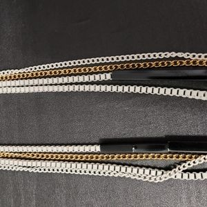 Add this and another noted item to a bundle for a 2/$15 deal Multi strand gold black and white necklace Clasp back
