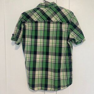 2/$15 Point Zero Green Plaid Casual Button Up Shirt Short Sleeve Size Medium