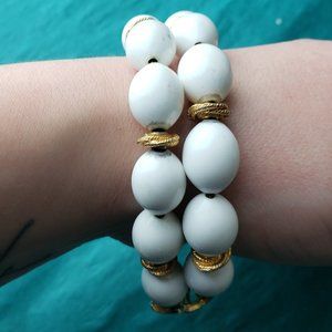 2/15$ Vintage Monet white beads and gold tone bracelet