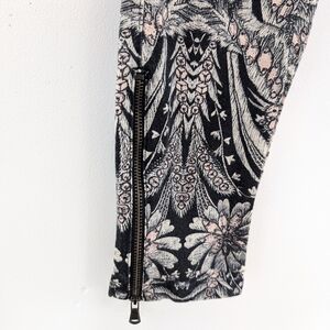 Zara Trafaluc skinny pants with a bold black and white pattern, leather-like trim and zips at the ankles. The material is denim-like.