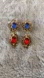 Vintage. Gold-toned filigree surrounds an oval, coloured stoned. Stud earrings. New earring backs included. Red, blue, gold. Antiqued look. Good condition: the gold-tone has worn off in some places on the blue ones. Nice weight to them without being too heavy.