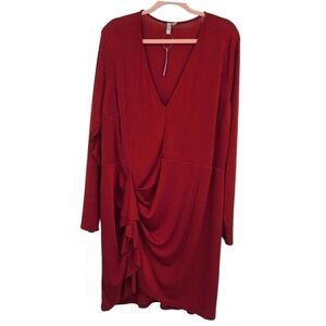 22 • ASOS Curve • Plunge Mini Long Sleeve Dress with Ruffle Detail