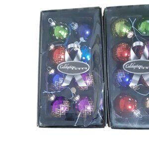 24 are shown but only 22 are Celebrations by Radko. Mix of Purple, Green, Red and Blue with glitter in polka dots or stars patterns.