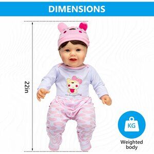 * Premium Material: Prepare to be blown away by this baby doll's realistic details. The life-like baby dolls are made with soft vinyl and a soft cuddly body. It has a weighted body that adds to her lifelike characteristics. The lips and the fingernails were painted by hand, while the eyelashes were manually implanted. She has a full set of hair and moveable limbs allowing it to be hugged and cuddled. Additionally, this doll has an easy-to-clean surface, to keep clean and hygienic.