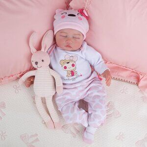 🆕 22 Inches cloth body Baby Doll With Vinyl Limbs Sleeping Baby Girl Doll