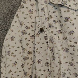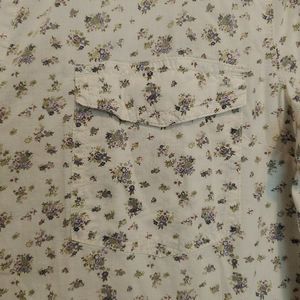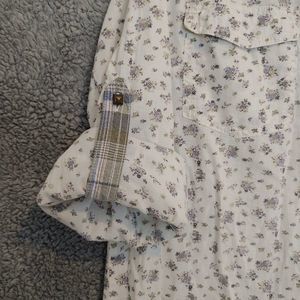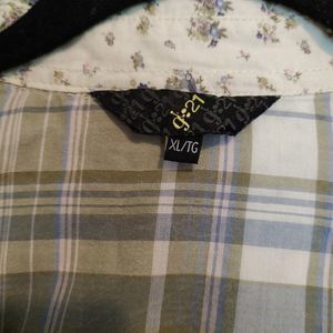 g21 button down blouse with adjustable sleeves. Made from 100% cotton, this top is very light. Measures 28" from shoulder to hem and 22" from armpit to armpit.