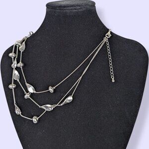 (2/$20) 3-Strand Metal Beaded Statement Necklace