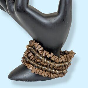(2/$20) 5-Strand Brown Beaded Stretch Bracelet