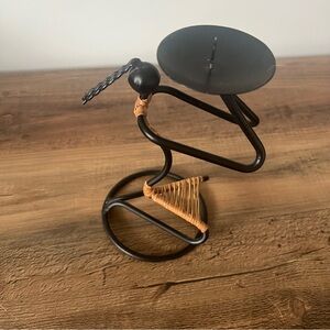 2/$20 African Art Wrought Iron Rattan 7”Candle Holder