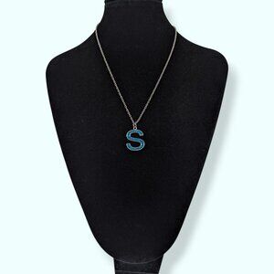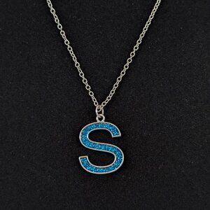 (2/$20) Blue Sparkle "S" Pendant Necklace