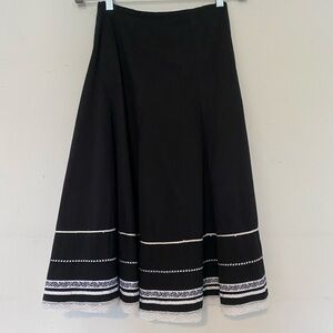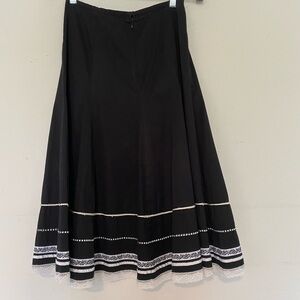 😍2/$20 Boho Sz 4 Black Cotton White Ribbon & Lace Embellished Midi Skirt