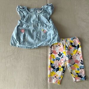 Adorable blue top with floral leggings. Perfect for a playful day out.