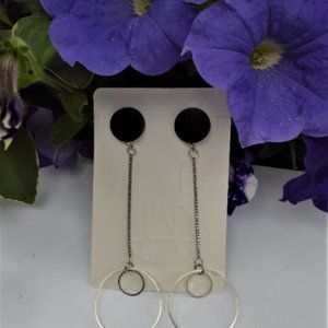 2/$20 Circle dangle earrings, drop box chain extra long earrings, hoops on chain
