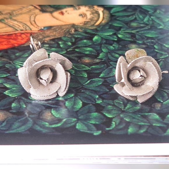 2/$20 Coro Silver mesh rose clip-on earrings