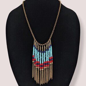 (2/$20) Dangling Red & Blue Seed Bead Necklace