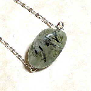 2/$20, Dark Green Prehnite Necklace, Genuine Tumbled Gemstone Bar Pendant