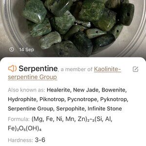 The serpentine is famous for their olive green colour and smooth or scaly appearance, which is the basis of the name from the Latin serpentinus, meaning "serpent rock". Appreciated for its coloring and clouded appearance, it has been used as a carving stone by civilizations ranging from ancient Rome to the modern Mãori. It is the official State Rock of California.