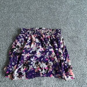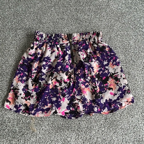 Stylish skirt with a vibrant floral pattern. Features shades of purple, pink, and black. Length ~16.5inches Great condition