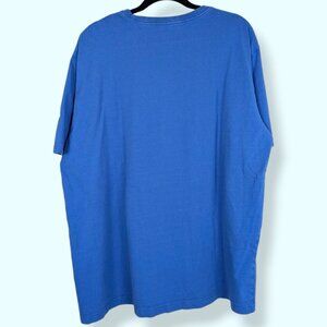 This t-shirt by Ecko Unlimited is made of 100% cotton and is blue with short sleeves. The shirt features a large logo graphic on the front that I think I've seen on just about every Ecko shirt I've seen. There is a rhino in the center, under which it says, "VANDALS CREW, SEVEN DEUCE" (1972). The shirt has normal wear, including fading of the blue colour of the shirt, but the shirt is still very wearable.