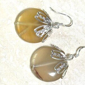 2/$20, Earthy Agate Cute Pumpkin Earrings, Genuine Gemstone Sterling Silver Hook