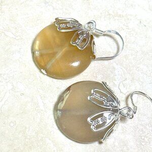 Earthy Agate Cute Pumpkin Earrings, Genuine Gemstone Sterling Silver Hook