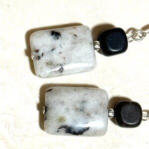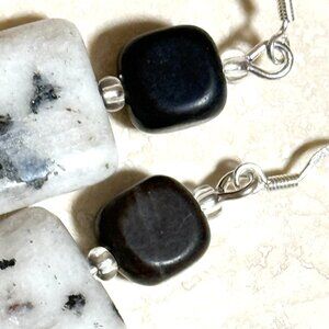 2/$20, Genuine Black & White Agate Drop Earrings, Sterling Silver Hook +Gemstone