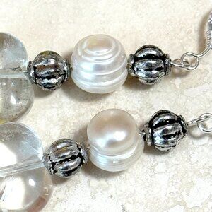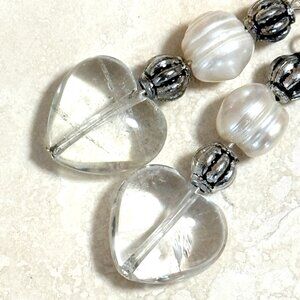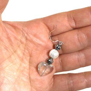 2/$20, Genuine Clear Quartz & Pearl Stone Heart Sterling Silver Earrings